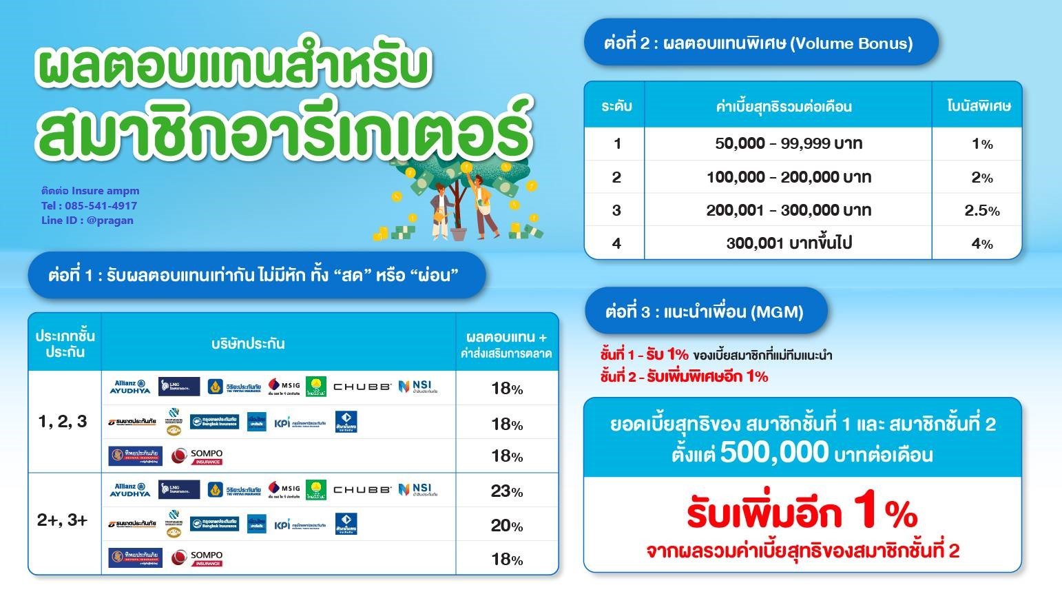 อารีเกเตอร์ โดยบริษัท เงินติดล้อ จำกัด, บริษัท เงินติดล้อ จำกัด และ อินชัวร์ เอเอ็มพีเอ็ม เป็นนายหน้าประกันวินาศภัยเท่านั้น