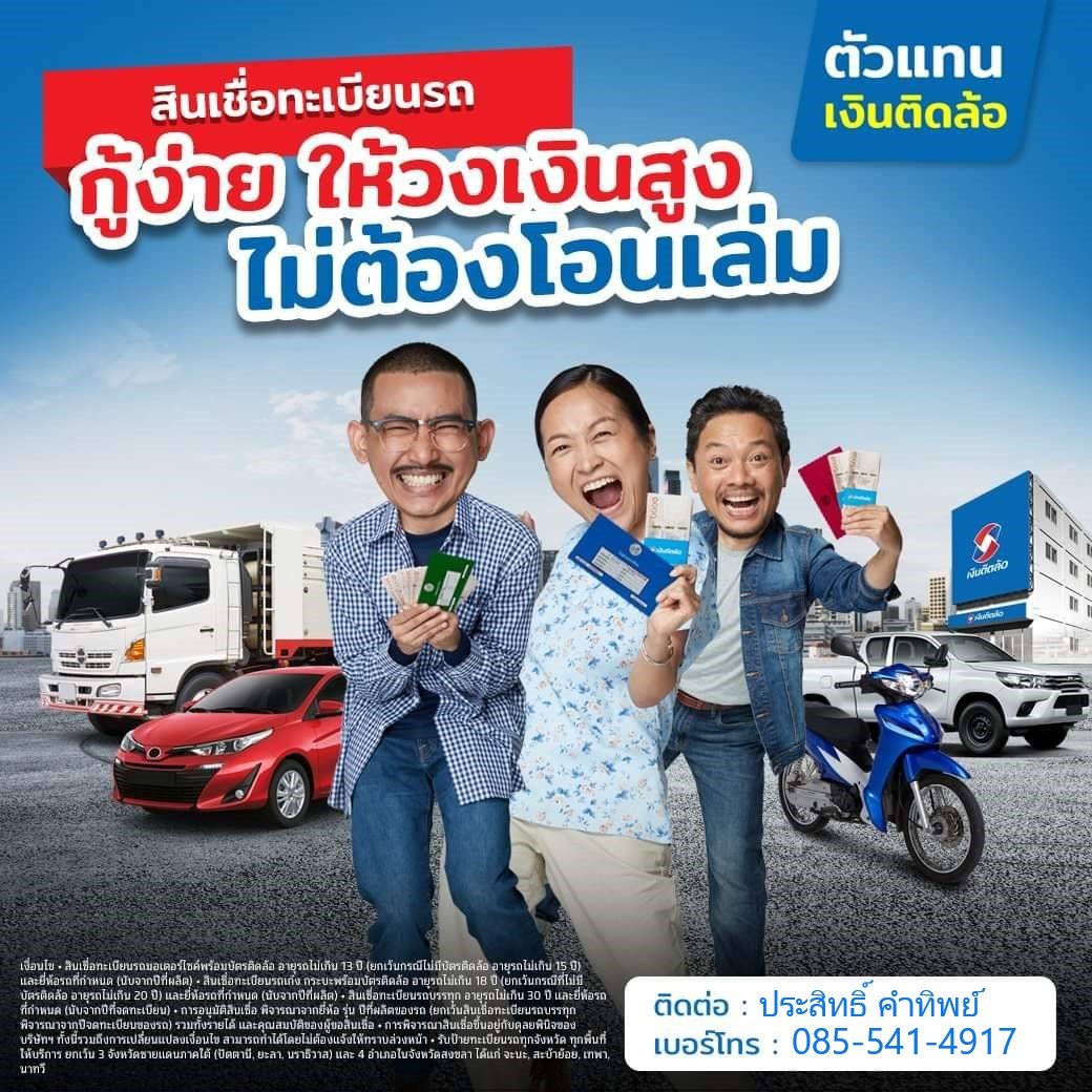 สินเชื่อรถยนต์ เงินติดล้อ พร้อมให้บริการสินเชื่อรถแลกเงิน ทั้งสินเชื่อทะเบียนรถยนต์เก๋ง/กระบะ สินเชื่อรถบรรทุก สินเชื่อรถมอเตอร์ไซค์ กู้เงินด่วน อนุมัติไว ได้เงินเร็ว เอกสารไม่เยอะ ไม่ต้องค้ำไม่ต้องโอน ดอกถูกวงเงินสูง โปะได้ปลดหนี้เร็ว